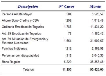 casa digna y propia. Esta cifra representa un 16,68% del total de bonos