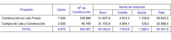 los bonos otorgados en el 2017 se destinaron a Construcción en Lote Propio