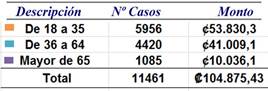 edades de entre los 18 y 35 años, seguido por el grupo de personas con 36 a 64