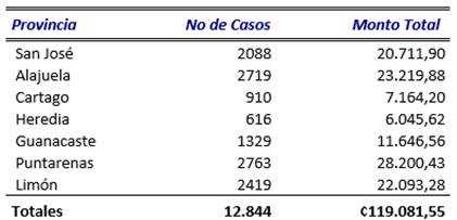 En cuanto a la distribución de los bonos otorgados por provincia, las estadísticas muestran una colocación más desconcentrada de los bonos otorgados en el 2018, manteniéndose Heredia como la provincia de más baja tramitación de casos con un 4,8% del total de bonos formalizados en el año, mientras que Puntarenas desplaza a Alajuela con la mayor concentración con 21,5% como la provincia con mayor número de bonos tramitados.